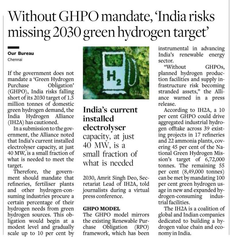 India Hydrogen Alliance recommends Hydrogen Purchase Obligations (HPOs), Common Offtake Plan for Refinery, Ammonia Plants to achieve NGHM...
