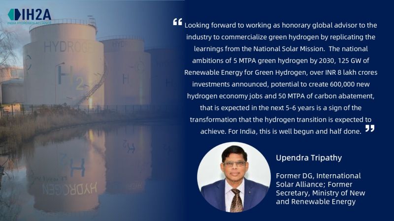 India Hydrogen Alliance (IH2A) welcomes Upendra Tripathy as Honorary Global Advisor to accelerate India’s green hydrogen transition.